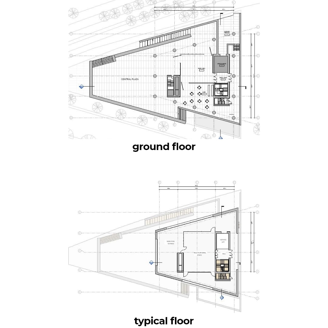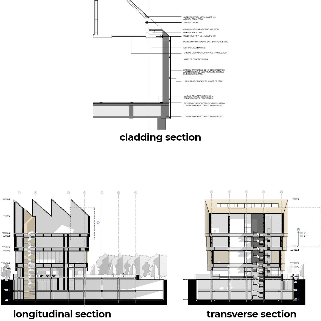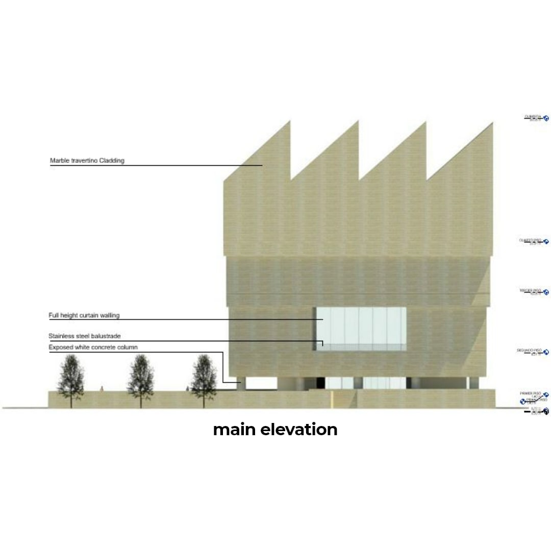 The project was developed in its entirety using Revit. Creating a 3D building model with walls, curtain walls, windows, and doors.